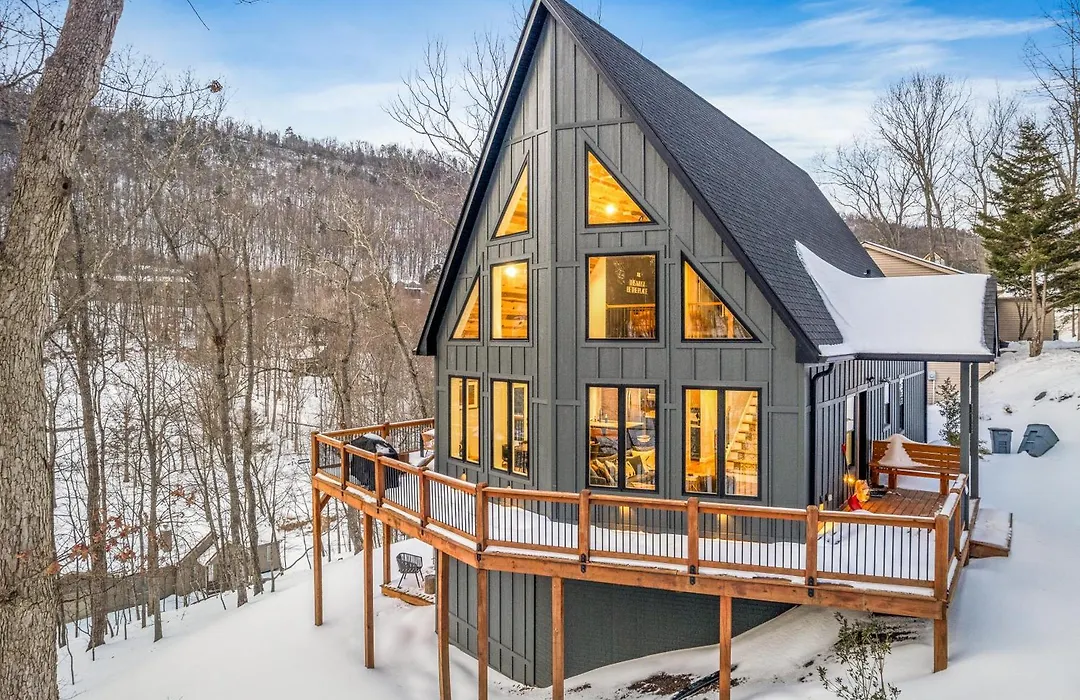 New The Chaletresorthot Tubgameroomfirepit Massanutten villa ligt 2 km verwijderd van Kaylor Knob en biedt toegang tot toeristische plekken in de omgeving.